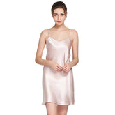Slip into elegant simplicity with this silk nightgown. Designed with a delicate V-neckline and thin adjustable spaghetti straps, this piece offers a flattering, feminine silhouette while ensuring optimal comfort. Material: 100% 22 Momme Luxury Mulberry Silk.Style: one-piece Silk Nightgown.Shoulder Strap: Narrow Adjustable Shoulder StrapsNeckline: Alluring...- From $119.00 USD