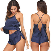 Silk Cami Pj Set Pure Summer Sexy Silk Camisole For Women - Navy Blue